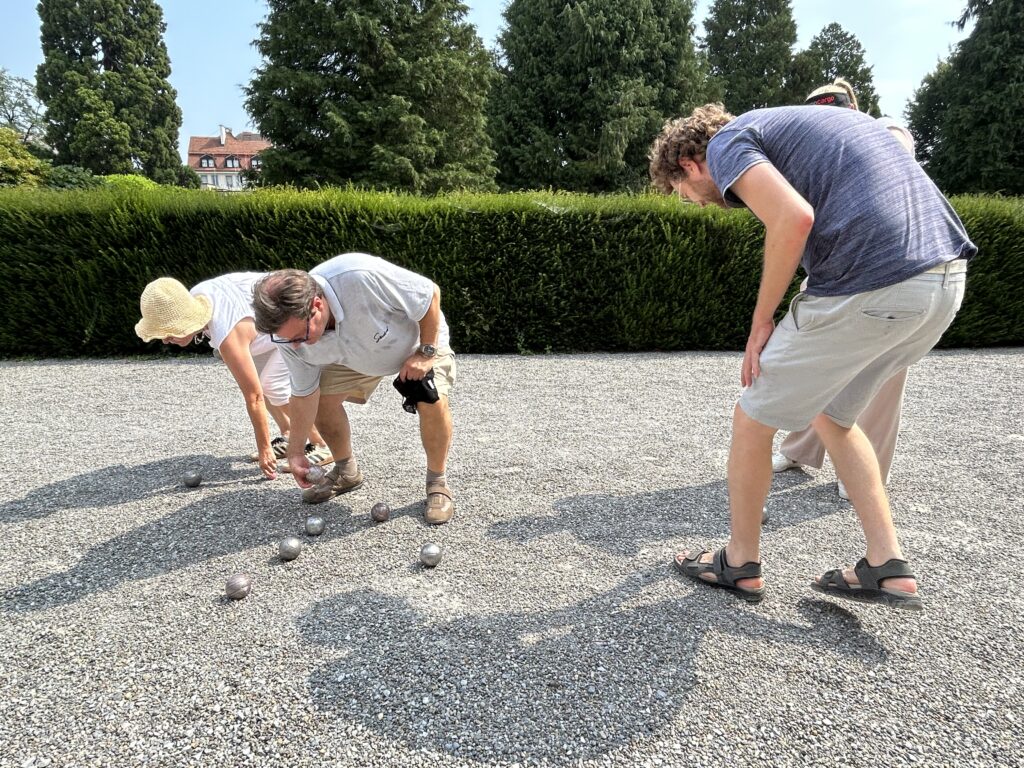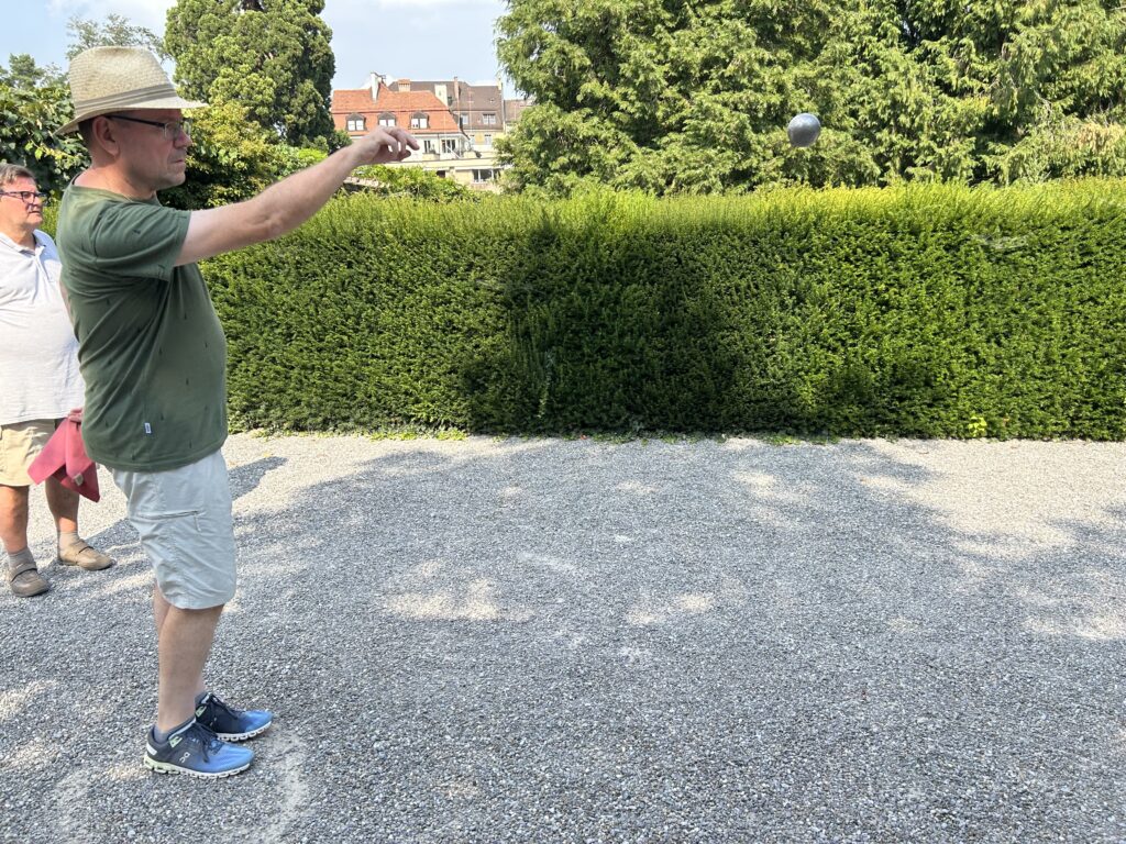 17 Spieler*innen trafen sich am 16. August 2025 bei sommerlichen Temperaturen zum jährlichen Kugelwerfen auf dem Kies im Neumünsterpark. Nach sechs mehr oder weniger umkämpften Runden, machte dann der Vorstand im Final den Sieger unter sich aus. Felix und Markus behielten dort nach heisser Schlacht das bessere Ende für sich und verwiesen die Vorjahressiegerin Marianne und den Vorjahreszeiten Beat auf den 2. Platz.